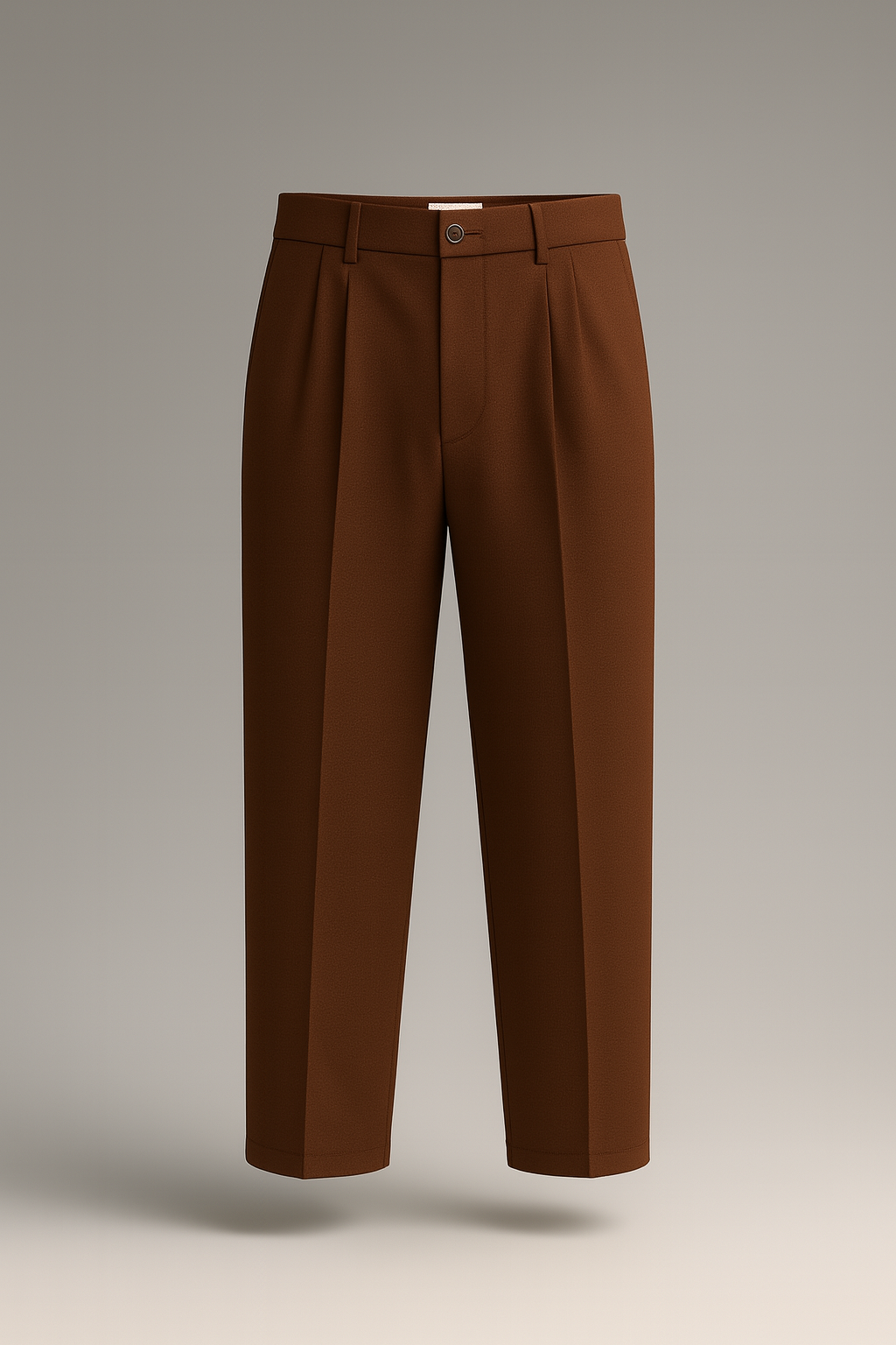 A walnut brown trouser and a classic beige tee—the kind of pairing that turns simplicity into signature. A timeless uniform for every day.